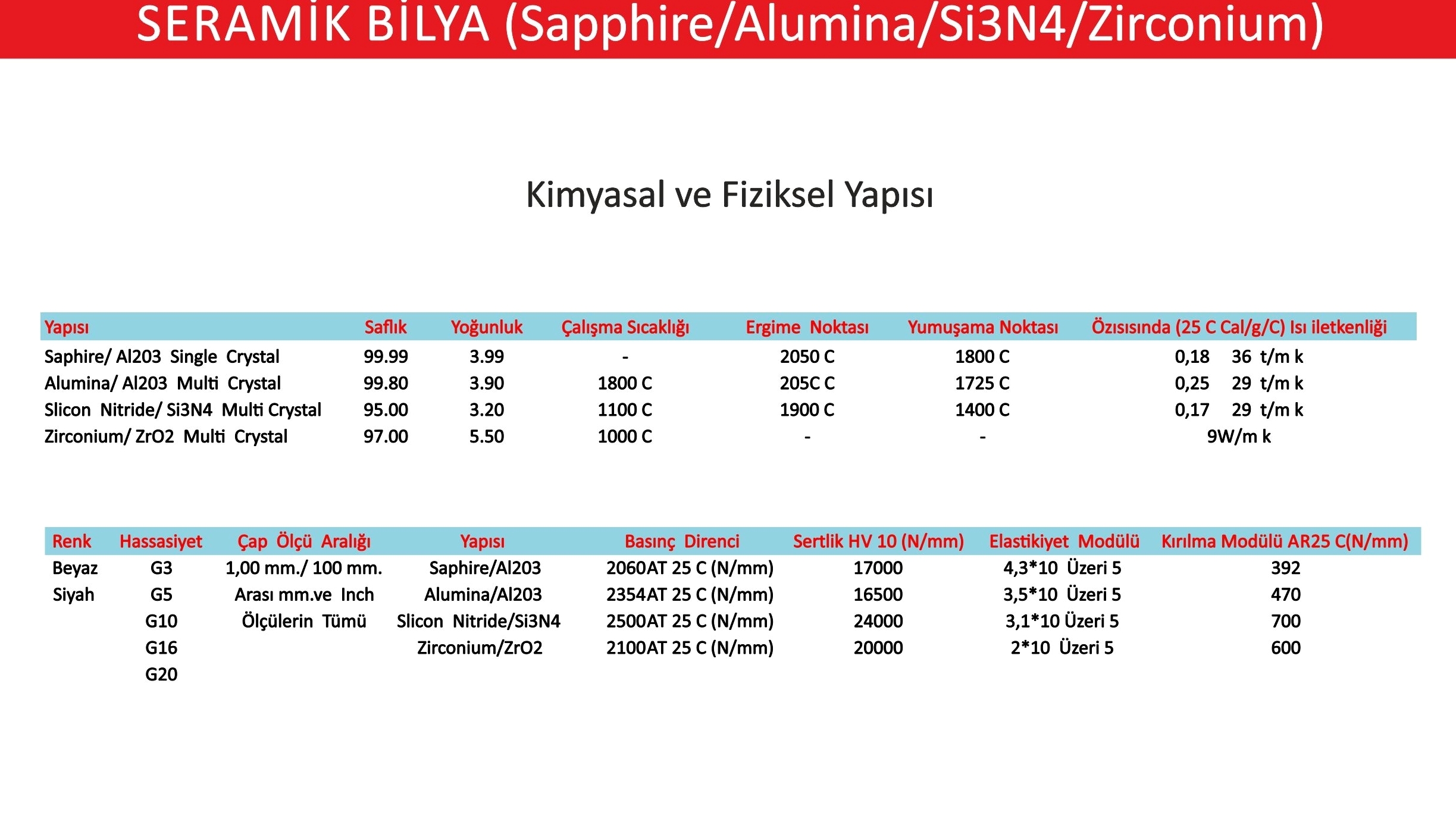 İthal ettiğimiz Seramik Bilyaların kalitesi Metalik Markamız ile güvence altındadır.